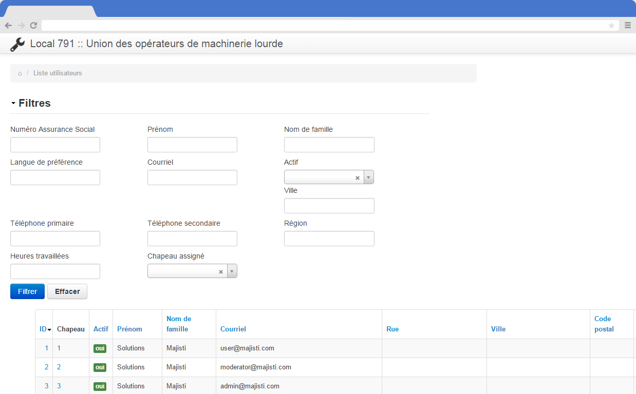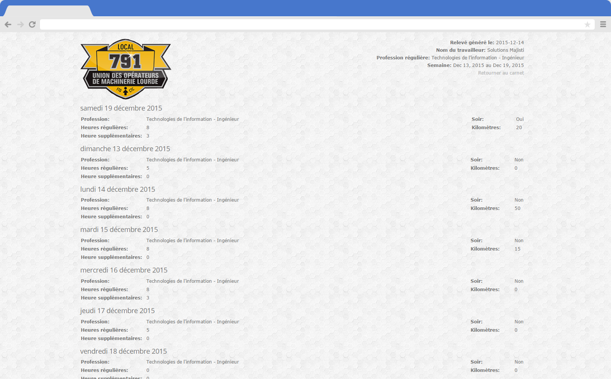 Previously working with a set of Excel files, we worked with FTQ's Local 791 to bring them up to date and provide them with an online system to track their employees and their timesheets.