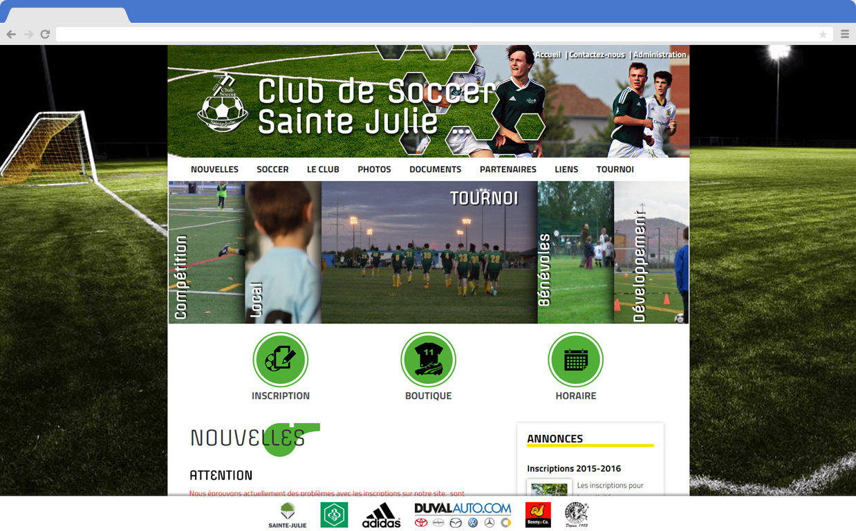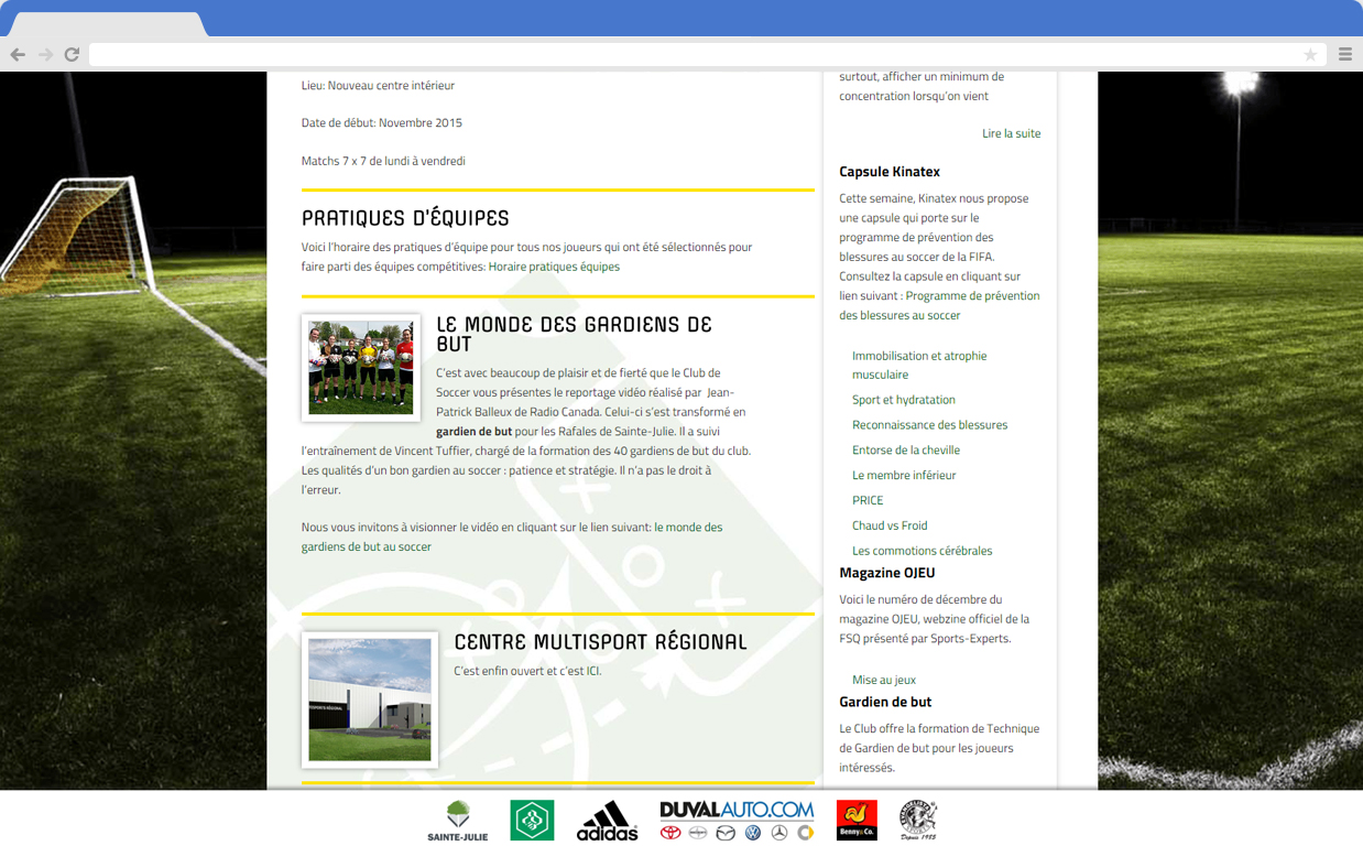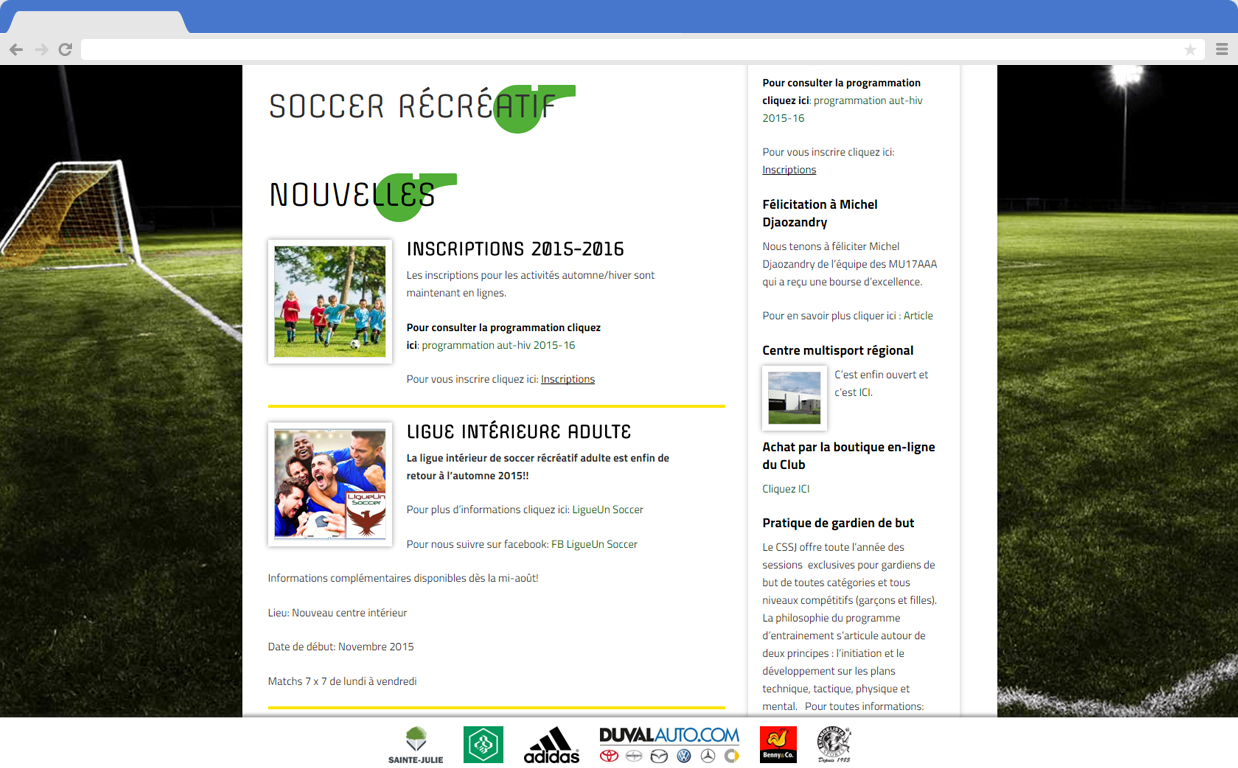 A design refresh for the Sainte-Julie Soccer Club, they needed to have their custom made backend connected to a brand new WordPress installation. We also built them custom theme.